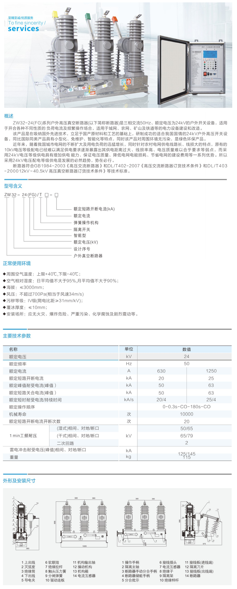 ZW32-24(FG) 系列戶外高壓真空斷路器( 以下簡(jiǎn)稱斷路器) 是三相交流50Hz、額定電壓為24kV 的戶外開關(guān)設(shè)備..